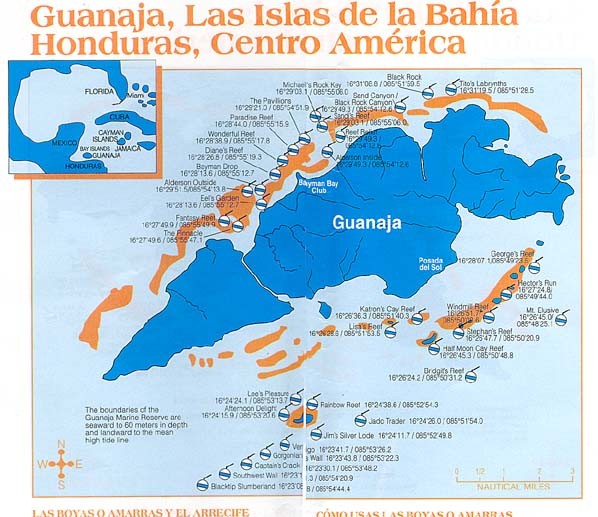 The permanent buoys replace the "chokers" that were previously used. An English/Spanish informational map/brochure containing information on the buoys, their location, the Guanaja Marine Reserve, the coral reef ecosystem, and tips for reef friendly diving, boating and living is being prepared for distribution to all residents and visitors.